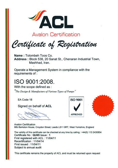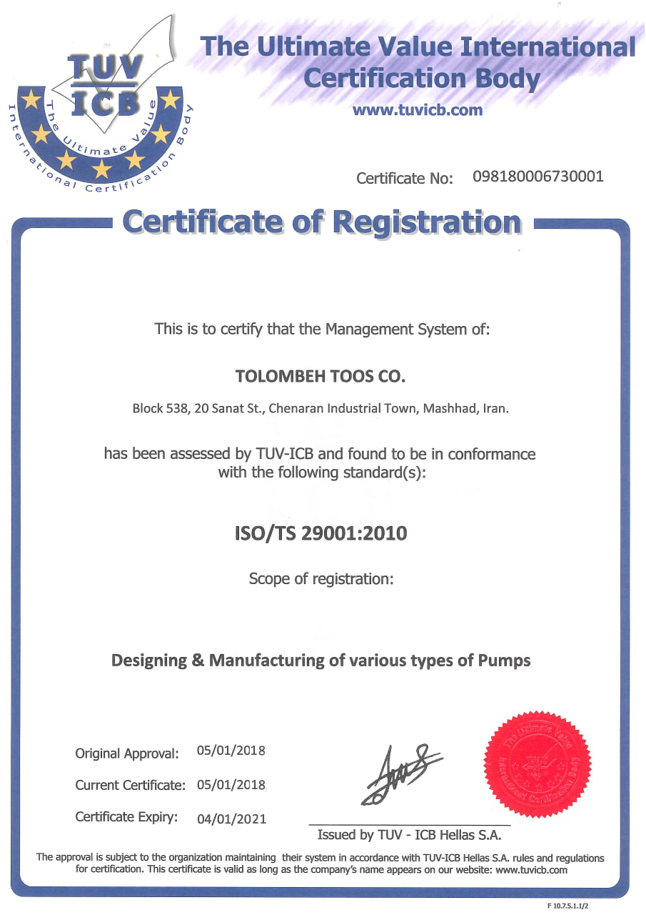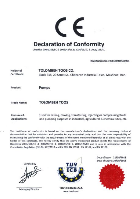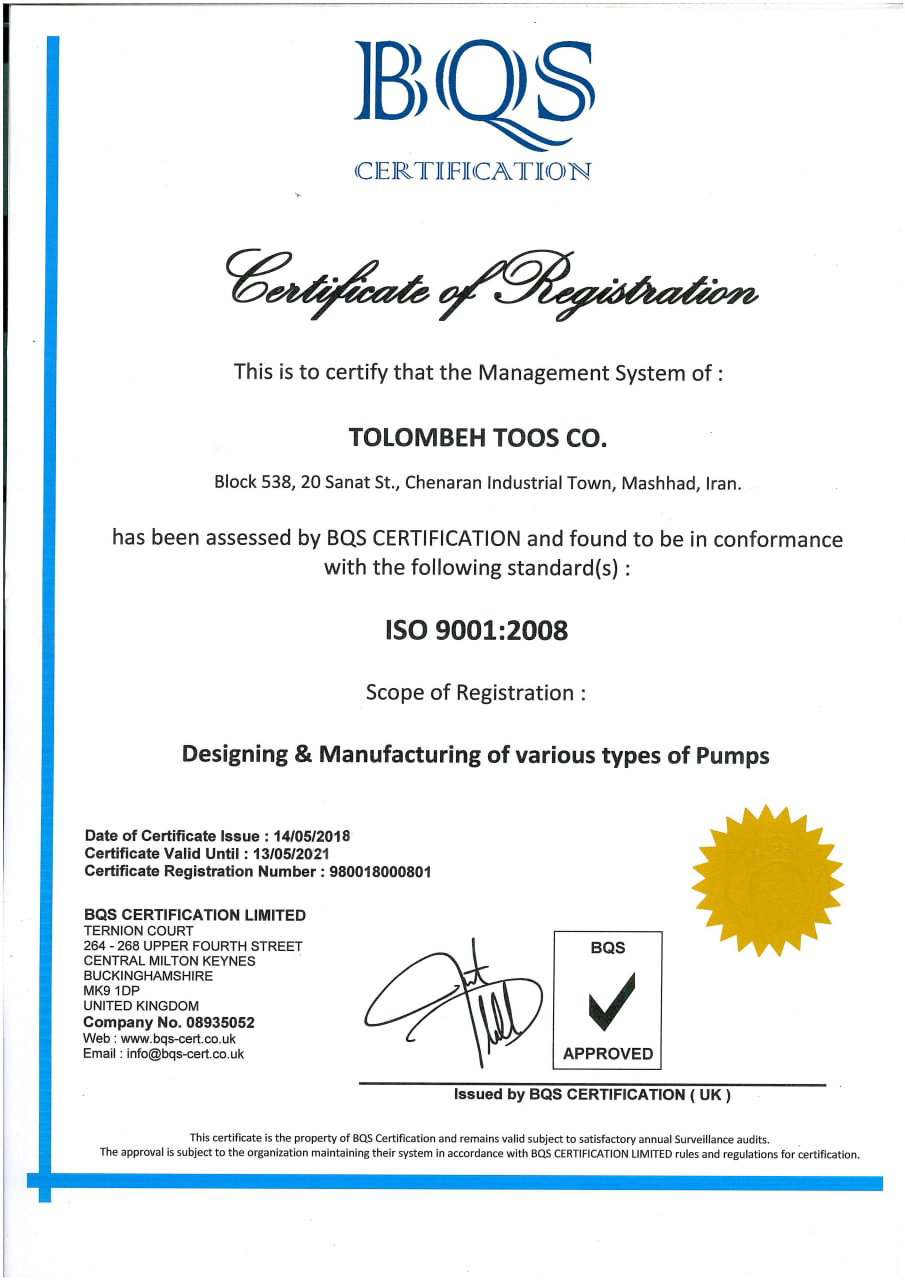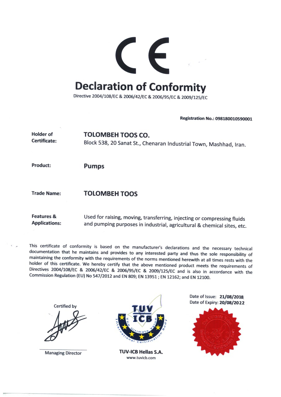 گواهینامه های تلمبه توس